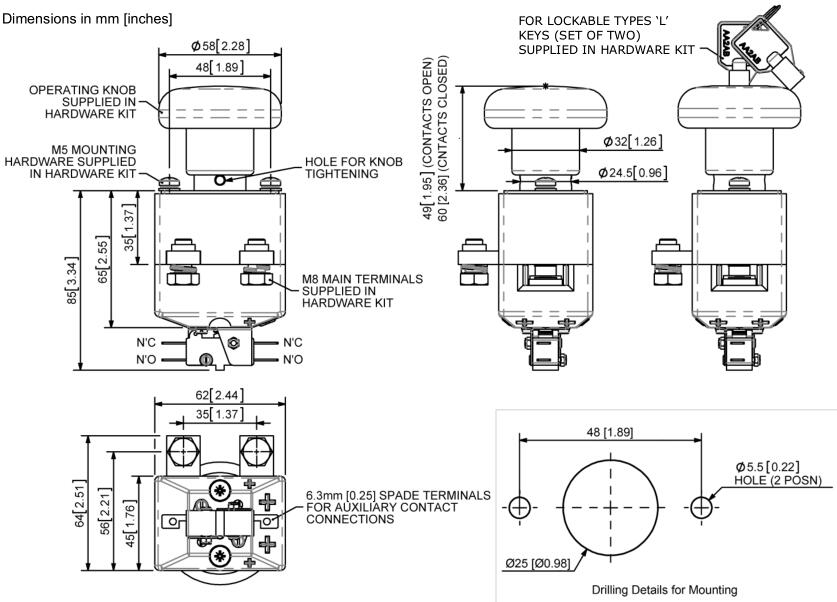 ED300系列开关的设计旨在提供在发生严重电气故障时断开电池或其他电源的快速方法。虽然开关主要用于电池供电的车辆,但它们也适用于静态电力系统。所有类型都能够在紧急情况下安全地破坏满载电池电流。